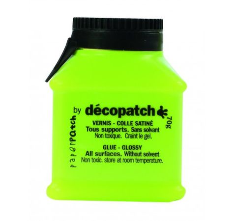 Vernis colle convenant à tout type de support à décorer (feuilles Décopatch, serviettes etc). Inodore, sèche rapidement (sans acide ni solvant)