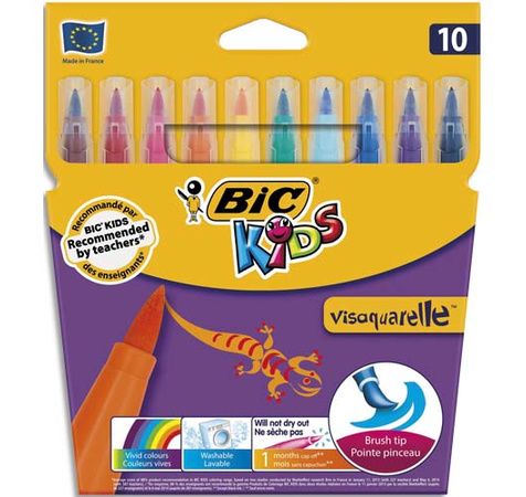 Pochette 10 Feutres À Dessin Pointe Pinceau Encre Lavable Conte Visaquarelle