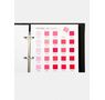 • Trente-cinq couleurs 2,5 cm x 2,5 cm par page sur onglets amovibles