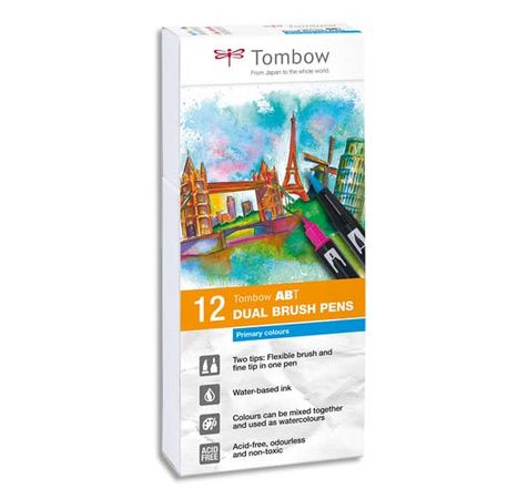 Set de 12 feutres-pinceau ABT Dual Brush Pen double assortis couleurs primaires, aquarellables