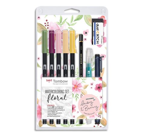 Set d'aquarelle florale. Comprenant un guide ainsi que 5 ABT dual brush + accesoires