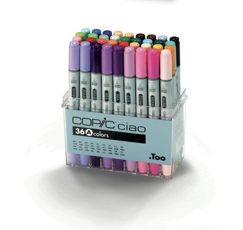 Le marqueur double-pointe CIAO est idéal pour commencer avec COPIC. Il dispose des mêmes pointes interchangeables que le COPIC SKETCH: une pointe biseautée et une pointe pinceau souple, mais avec un nuancier plus réduit: 180 couleurs au lieu de 358.