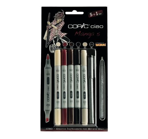 Ce set comprend les couleurs suivantes : un marqueur calibré COPIC Multiliner 0,3mm pour encrer les contours du dessin et 5 marqueurs COPIC CIAO pour la colorisation.