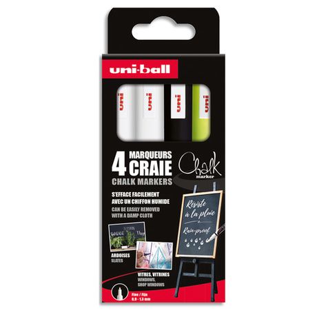 Marqueur craie qui résiste à la pluie. Utilisations professionnelle et domestique en intérieur et en extérieur.