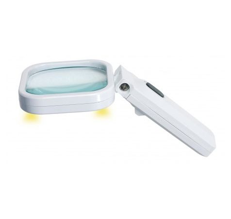 Munie de 4 lampes à LED. Grossissement x3. Taille 7.5x7.5 cm. Orientable ajustable de 120 à 180°. Livrée sans pile.