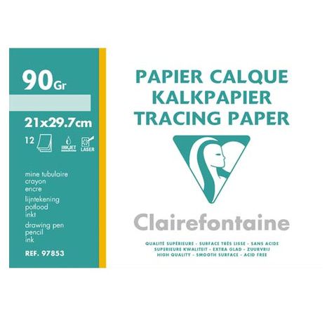 Pochette de 12 feuilles 95g papier calque format A4 Ref-96853