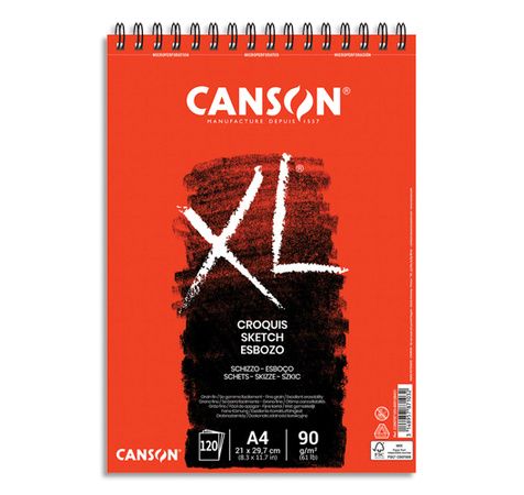 Ce bloc spiralé, petit côté, est composé de 60 ou 120 feuilles (suivant les formats) de papier ivoire Canson® XL® Croquis grain léger 90g/m². Il est le support idéal pour le croquis rapide ou l’étude au crayon, fusain, sanguine, pastel.