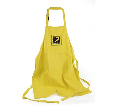 Tablier d'artiste jaune en coton avec 2 poches à l’avant pouvant contenir vos pinceaux ou tubes de peintures et un fermoir clip ajustable au niveau du cou.