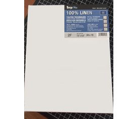 Lin à grain moyen. 2 couches de colle de peau, enduction acrylique 'au sabre'.