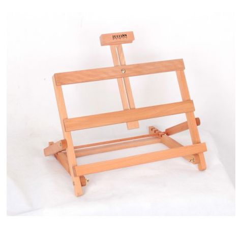 Lutrin réglable en 5 positions (dont une horizontale pour l'aquarelle). Porte toile réglable en hauteur jusqu'à 47cm. Pieds en gomme anti glisse pour une stabilité parfaite. Usages multiples : lutrin, chevalet de table ou table à dessin. Réalisé en hêtre huilé.