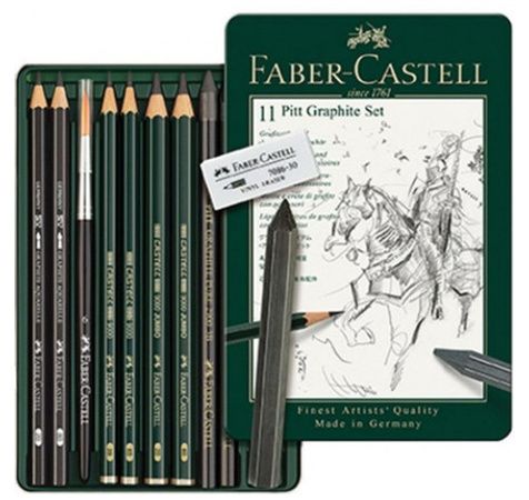 L'assortiment PITT Monochrome graphite offre à tous les créatifs une grande variété de crayons et de craies dans des duretés différentes, idéales pour les esquisses, les dessins graphiques et de larges surfaces. Le "crayon graphite vert de Faber", dont van Gogh ou Goethe ont déjà parlé en termes élogieux, est de nos jours un compagnon indispensable au quotidien. Les 16 degrés de dureté vont d'un ton gris tendre à un noir graphite foncé et offrent ainsi beaucoup de possibilités de variation à l'artiste. Les crayons PITT graphite pur sont idéals pour créer des contrastes et pour ombrer de grandes surfaces. Selon la pression sur le crayon et la dureté, les crayons graphite pur offrent une expression spontanée inégalée. Les craies graphite PITT sont un outil idéal et très économique pour créer de grandes esquisses et surfaces.