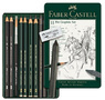 Assortiment choisi de crayons graphite Castell 9000, Castell 9000 Jumboet crayons graphite aquarelle dans les degrés de dureté 2B et 8B,crayons Pitt Graphite Pure dans les degrés de dureté 3B et 6B