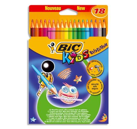 BICK E/18 CRAY COUL EVOLUTION ASS 937513 223407 Etui carton de 18 crayons de couleur assortis Evolution 6,34 € TTC