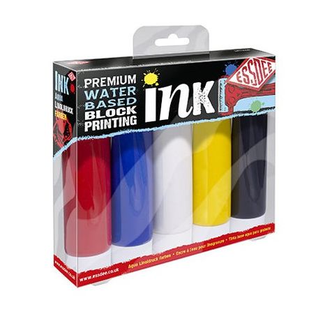 Set de 5 tubes de 100 ml encre linogravure (Rouge, bleu, jaune, blanc et noir)