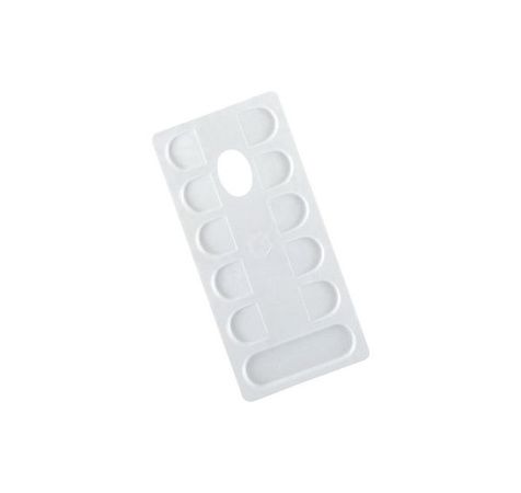Palette en plastique rectangulaire avec 5 compartiments de chaque côté. Quasi-incassable, elle sera principalement utilisée pour des couleurs à l’eau (gouache et acrylique).