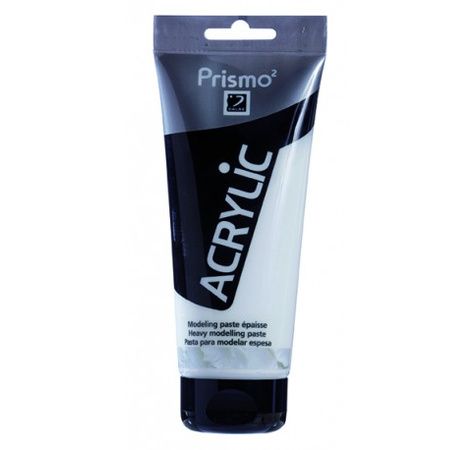 La modeling paste Prismo² se présente sous la forme d'une pâte d'aspect crayeux de haute viscosité. Elle peut-être mélangée avec des couleurs acryliques, elle tend à blanchir un peu et à adoucir le ton des couleurs et elle est le moyen idéal pour créer des reliefs et des empâtements.