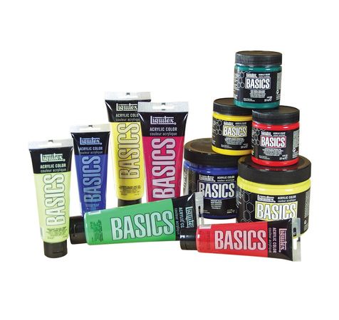 Acrylique Liquitex Basics, de consistance épaisse, une forte opacité et une excellente stabilité à la lumière. Contient le même liant que la gamme extra fine avec néanmoins moins de charge pigmentaire. L'Acrylique Liquitex Basics possède une viscosité épaisse, qui permet de garder les traces de couteaux et de pinceaux. Toutes les nuances sont miscibles entre elles. Couleurs vives et profondes, richement pigmentées, rendu mat satiné, très bonne tenue lumière.