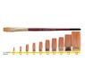 Poils en polyamide doré, virole laiton, manche court laqué bordeaux, bout noir. Plat, pour petites surfaces et touches plus visibles.