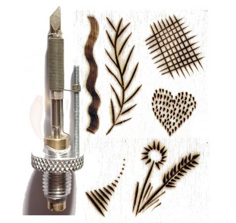 De forme biseautée, fournie avec chaque appareil de décoration à chaud R200 ou R300, cette pointe s'utilise pour les traits fins, pleins ou déliés.
