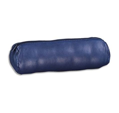 Trousse fourre-tout ronde en cuir teinté. Coloris Encre Bleue. Dimensions : 22 x 6 cm