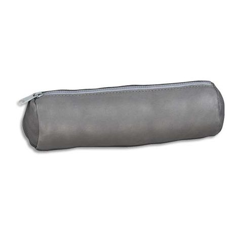 Trousse fourre-tout ronde en cuir teinté. Coloris Gris Souris. Dimensions : 22 x 6 cm