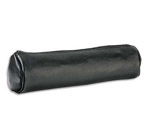 Fourre-Tout rond ELBA en Cuir Ébène Coloris Noir. Dimensions : 21 x 6 x 6 cm