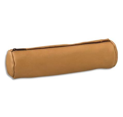 Trouse fourre-tout ronde en cuir naturel. Coloris Beige. Dimensions : 21 x 6 x 6 cm