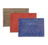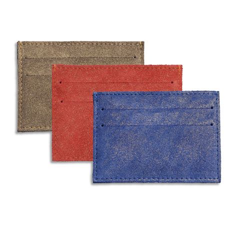 En cuir de vachette pailleté. Très souple et résistant. Coloris assortis : rouge, bleu, taupe. Porte-cartes. Emplacement central et 2 emplacements cartes. Doublure textile. Dimensions : 10 x 7,5 cm. Assortis Conditionnement conseillé par 6