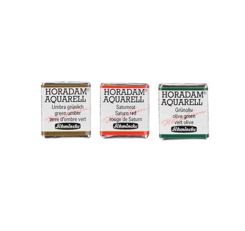 La gamme HORADAM de Schmincke est particulièrement harmonieuse, équilibrée et complète. Chacune de ces nuances sont sélectionnées pour assurer une brillance et une résistance à la lumière maximales. Les couleurs HORADAM AQUARELL sont caractérisées par leur résistance à la lumière, leurs caractéristiques de glacis et de pouvoir couvrant. Demi-godets : 139 couleurs au choix.