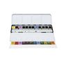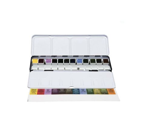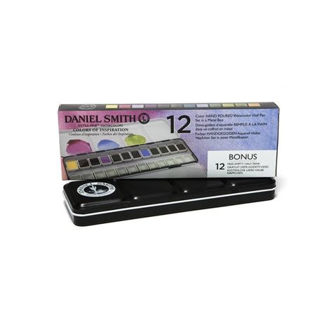 Les ensembles de peinture Daniel Smith sont spécialement sélectionnés pour un mélange flexible et peuvent être utilisés soit pour créer une nouvelle palette, soit pour élargir une collection existante. Cet ensemble d’aquarelle coulée à la main est présenté dans une boîte métallique noire et comprend en bonus 24 demi-godets vides. L’intérieur est peint avec un émail blanc pour faciliter le nettoyage.