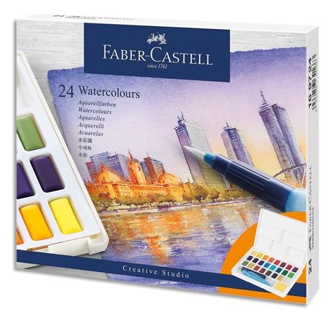 Boîte de 24 Demi godets Aquarelle. Palette détachable. Pinceau à eau forurni.
