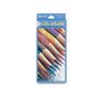 Boîte de 24 contient les couleurs : Vermillon, Brun, Terre cuite, Rouge Toscan, Bleu, Rouge carmin, Vert, Jaune, Noir, Pourpre, Bleu clair, Vert clair, Blanc, Pêche, Rose, Violet, Gris clair, Bleu Indigo, Vert herbe, Lavande, Jaune canari, Orange, Rose clair et Rouge écarlate.