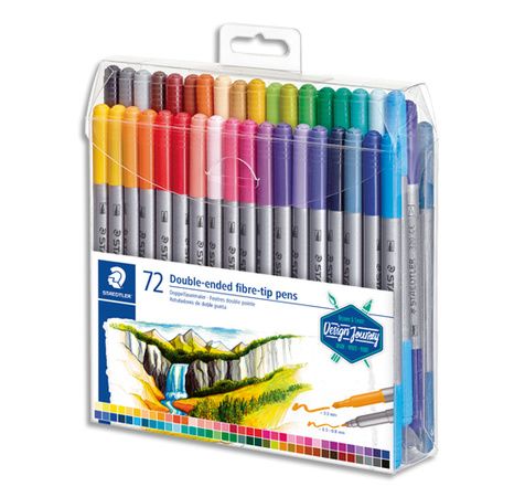 Set en plastique rigide transparent pegboardable. Set de 72 feutres de coloriage double pointe assortis