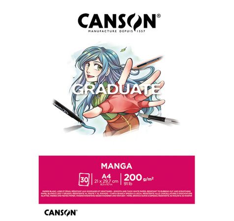 Bloc de 30 feuilles GRADUATE Manga. A4, 200gr. Blanc, lisse et résistant aux gommages et grattages