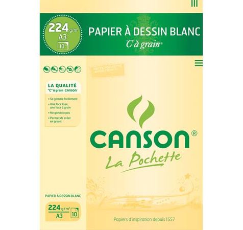Pochette de 10 feuilles de papier dessin C A GRAIN 224g A3 Ref-27115