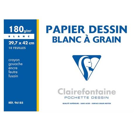Pochette de 10 feuilles papier dessin blanc A3 180g Ref-96185