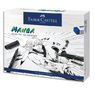 Contient : 3 feutres Pitt Artist Pen pointes 0,1 mm, 0,7 mm et pointe de pinceau (noir), 1 porte-mine, 1 gomme, 12 mines fines 0,5 mm B, 1 poupée articulée et 1 mode d'emploi. Fabriqué en Allemagne.