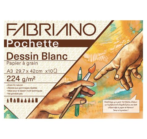 Pochette scolaire de 10 feuilles de papier dessin blanc à grain 224g 29,7x42 cm