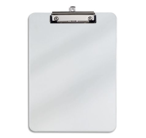 Porte-bloc simple A4 en polypropylène avec pince métal. Coloris transparent