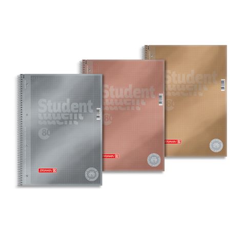 160 pages microperforées avec encoche pour un détachage facile. Perforation 4 trous. Couverture en carte pelliculée brillante. Réglure quadrillée 5x5 avec marge. Reliure à spirale. Papier satiné ultra blanc 90 g. Coloris assortis : doré, argenté, or rose.