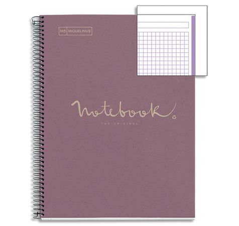 160 pages détachables par micro perforations et perforées 4 trous. Couverture en carte 100% recyclé. Reliure à spirale simple. Réglure à la couleur de la couverture quadrillée 5x5. Papier 100% récupéré post-consommation 80 g blanc. Format 21 x 29,7 cm (A4).