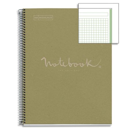 160 pages détachables par micro perforations et perforées 4 trous. Couverture en carte 100% recyclé. Reliure à spirale simple. Réglure à la couleur de la couverture quadrillée 5x5. Papier 100% récupéré post-consommation 80 g blanc. Format 21 x 29,7 cm (A4).