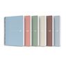 100 ou 180 pages. Couverture en carte cupcycling 100 % recyclée souple et légère fabriquée à partir de gobelets en carton usagés. Reliure spirale. Réglure quadrillée 5x5 margée ou lignée 7 mm. Papier blanc 100 % recyclé 90 g.