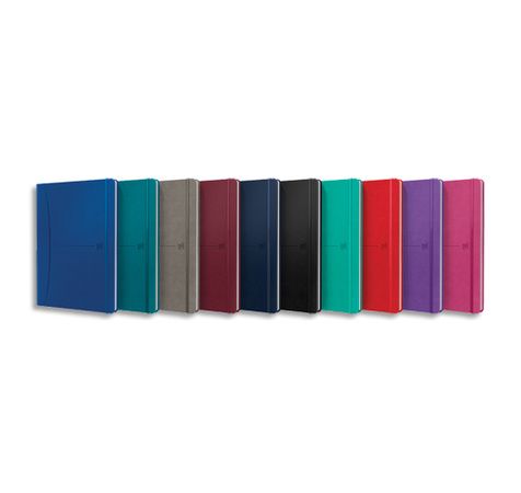 Couverture en simili cuir rembordé rigide. Réglure grise quadrillée 5x5 margée ou lignée 6 mm margée.