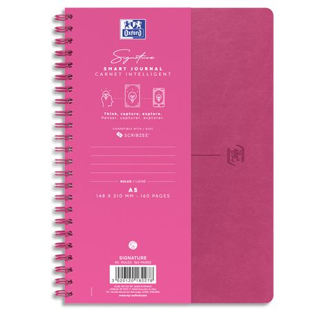 Carnet SIGNATURE format A5 couverture souple à spirale 160 pages lignées 7mm. Coloris fuchsia