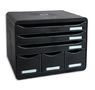 En polystyrène. Format à l'italienne (paysage) : idéal pour les espaces peu profonds de certains bureaux, armoires ou étagères (profondeur hors tout de 27 cm). Superposables grâce à 4 reliefs prévus à cet effet. Tiroirs ouverts permettant l'introduction directe de documents sans les ouvrir. Coulissement parfait des tiroirs, avec butée de sécurité et porte-étiquettes (fournis). Fourni avec un jeu d'étiquettes "Lundi à Dimanche" fourni.