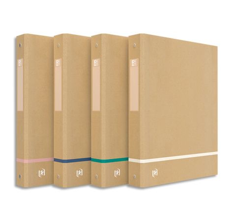 Couverture en carton rembordé de carte kraft, sans colorant ni chlore. Matériau 84 % recyclé. Dos 4 cm. Mécanisme 4 anneaux ronds Ø 30 mm. Etiquette de dos adhésive.