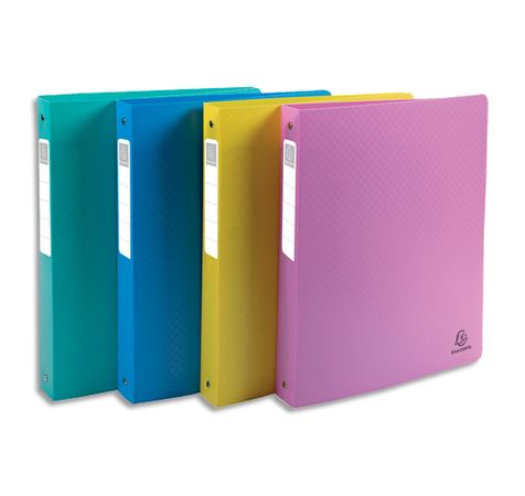 En polypropylène recyclé opaque 7/10e, effet texturé et finition mate. Dos 4 cm. Mécanisme 4 anneaux ronds Ø 30 mm. Etiquette de dos adhésive.