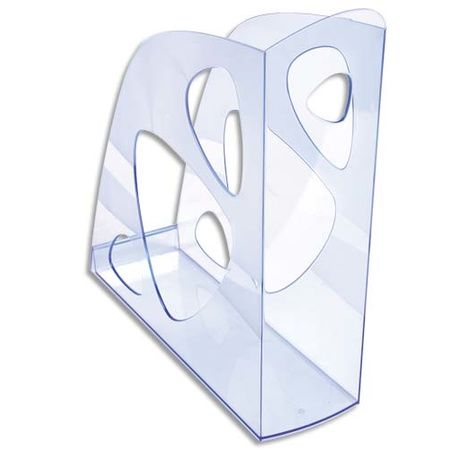 Porte-revues ECO en polystyrène, Bleu translucide - Dos 7,7 cm, H25,7 x P24,8 cm