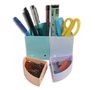 En polystyrène. 4 quartiers pouvant être combinés ensemble ou superposés pour gagner de la place et/ou cacher des objets (médicaments, jeton de machine à café, clé USB...). 2 compartiments hauts pour les grands ustensiles (ciseaux, stylos...) et 2 bas pour les petits objets (trombones, punaises...).